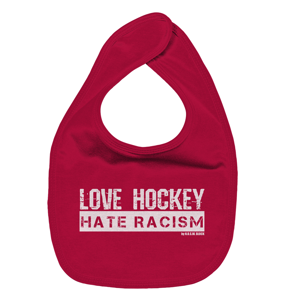 N.O.S.W. BLOCK Lätzchen "LOVE HOCKEY HATE RACISM" Organic Baby-Lätzchen red