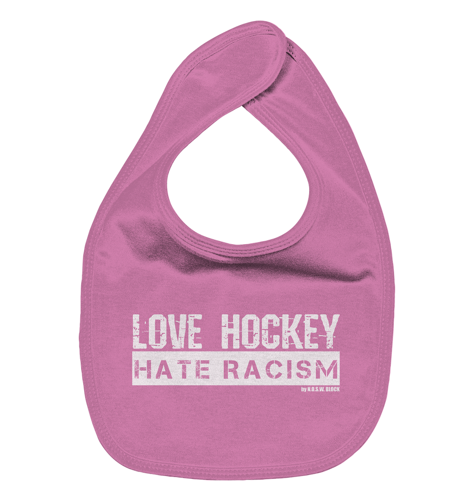 N.O.S.W. BLOCK Lätzchen "LOVE HOCKEY HATE RACISM" Organic Baby-Lätzchen bubble gum pink